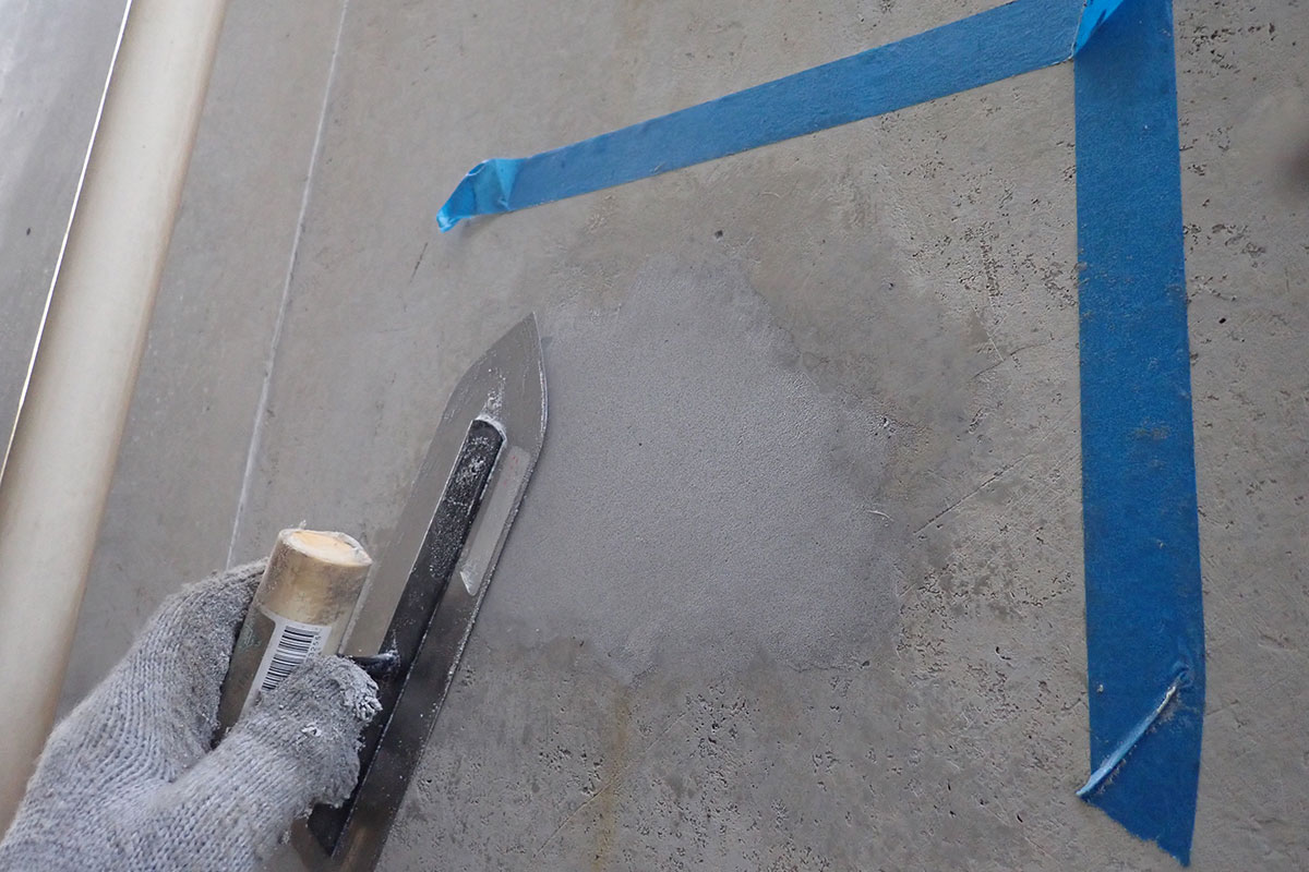屋根や壁のひび割れの補修、旧塗膜のケレンなどを行います。