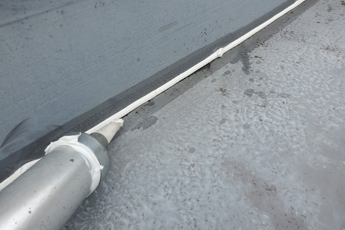 ベランダ防水、雨樋等の塗装及び、タスペーサーの取付、板金部のシーリングなどなどです。