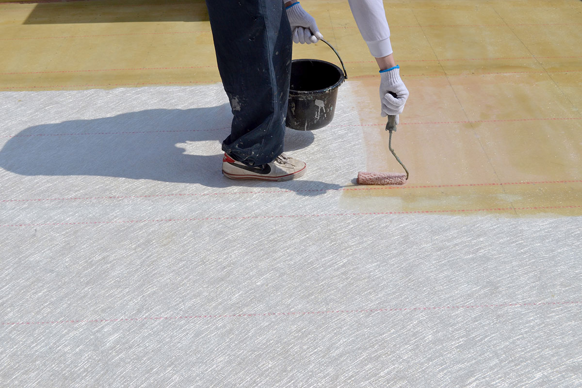 防水工事では主にベランダなどから水が漏れてしまわないように塗料を塗布する工事を行なっています。